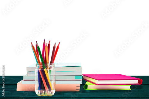 Books Pen Pencil And Office Equipment On White Background Education And Back To School Concept Clipping Path Stock Photo Adobe Stock