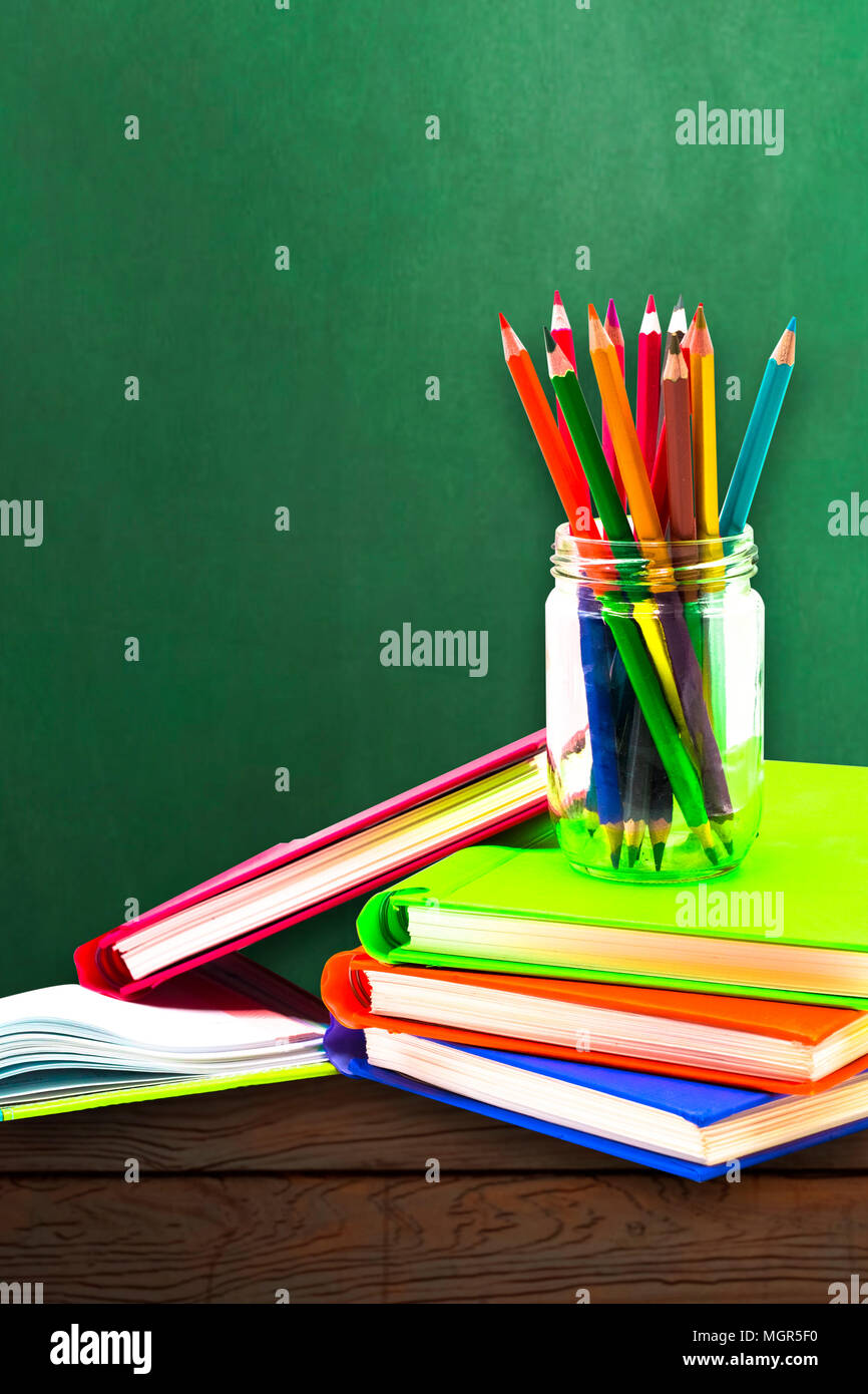 Books Pen Pencil And Office Equipment On Board Background Education Stock Photo Picture And Royalty Free Image Image 100349533