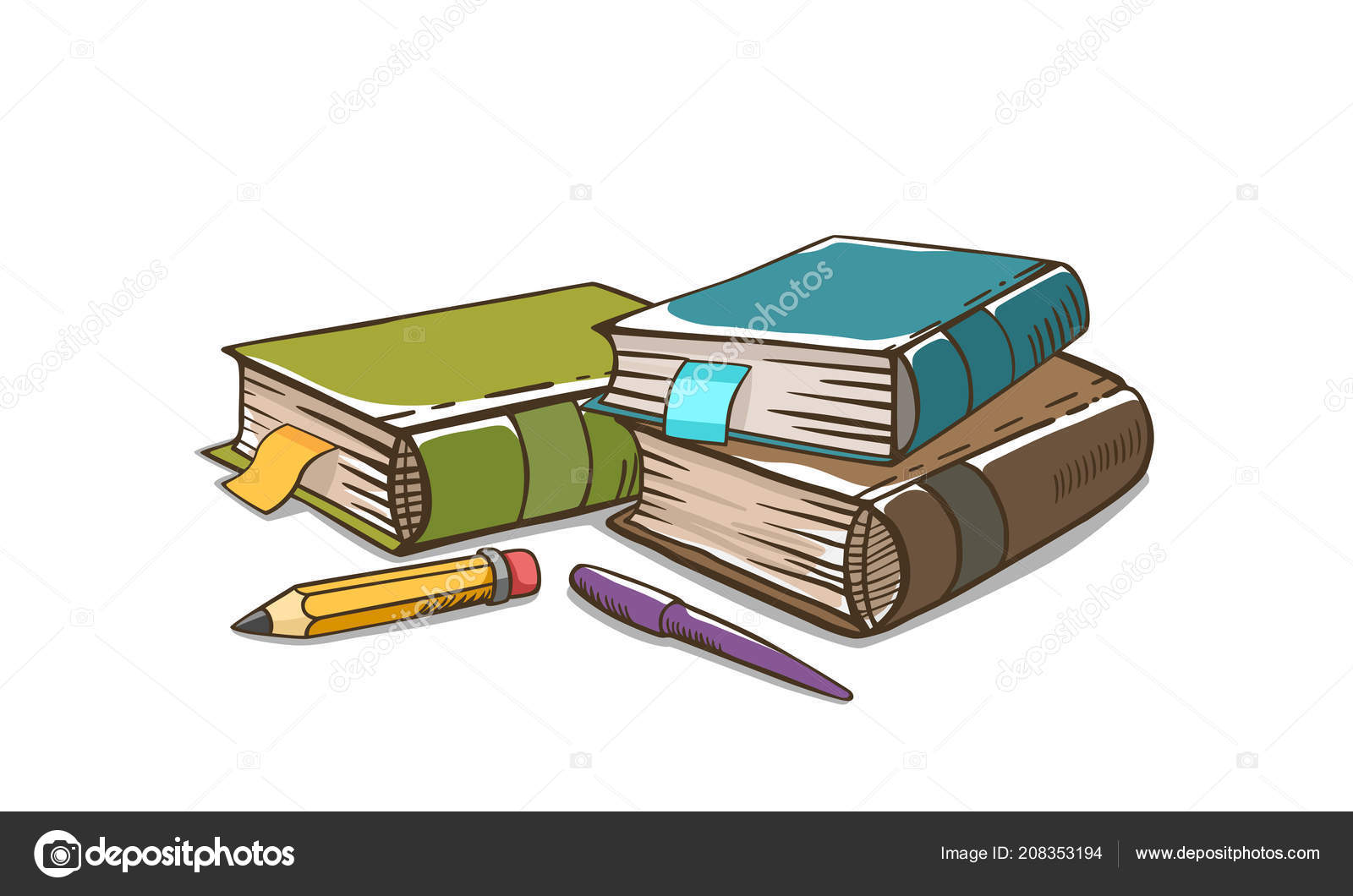 Tree Books Pen Pencil White Background Green Book Brown Book Vector Image By C Natalliavasilkova Vector Stock 208353194