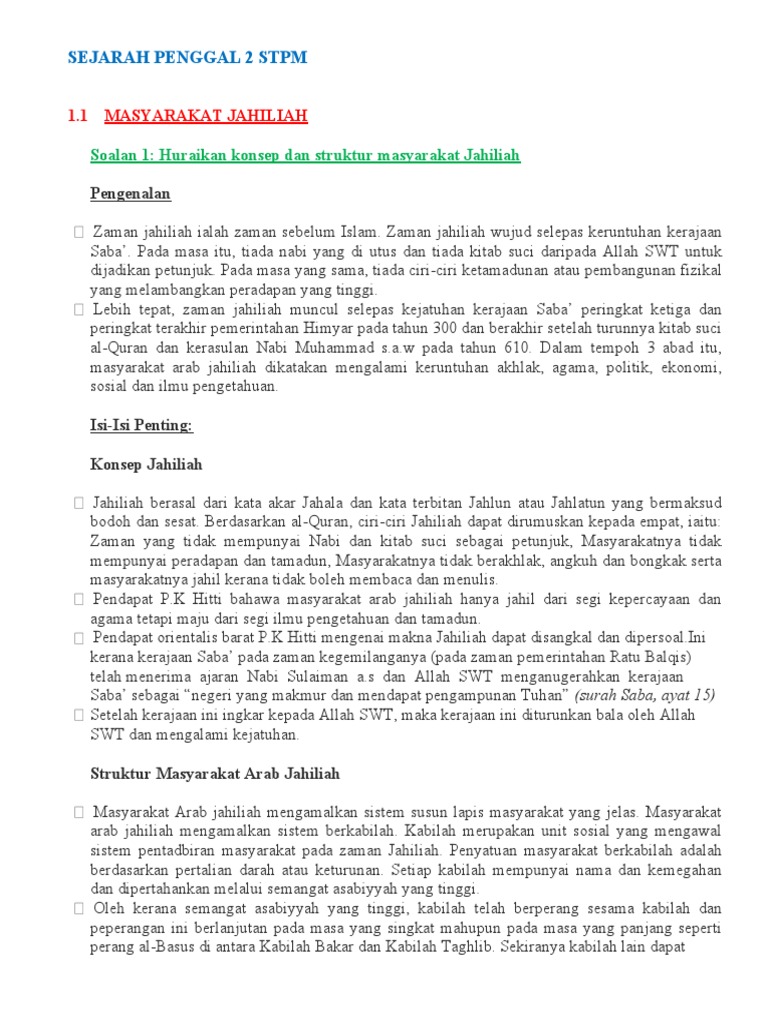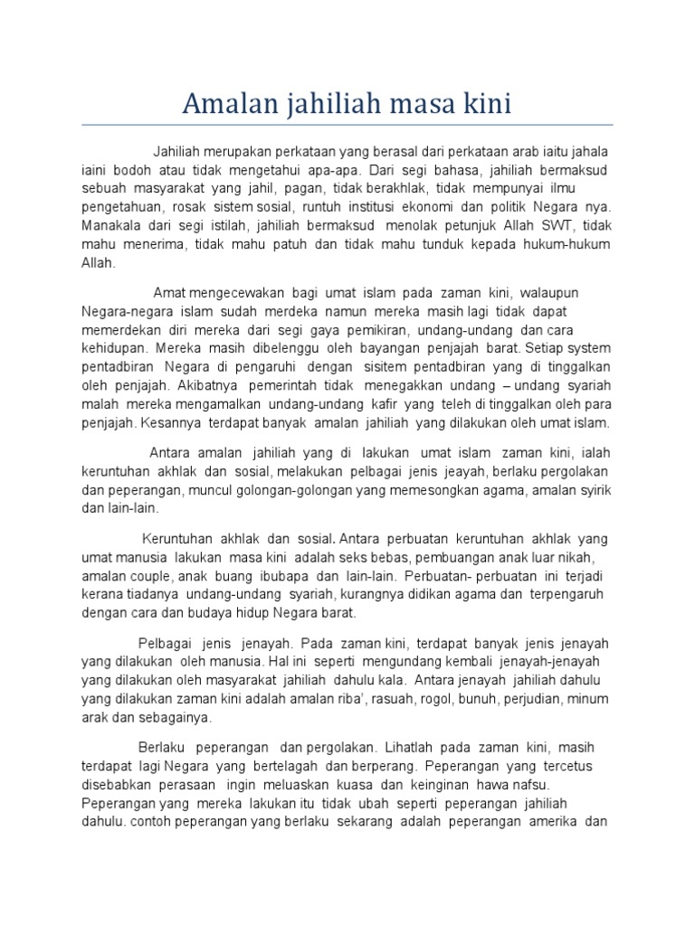 Doc Contoh Jawapan Esei Ciri Ciri Zaman Jahiliah Mohd Asri Omar Academia Edu