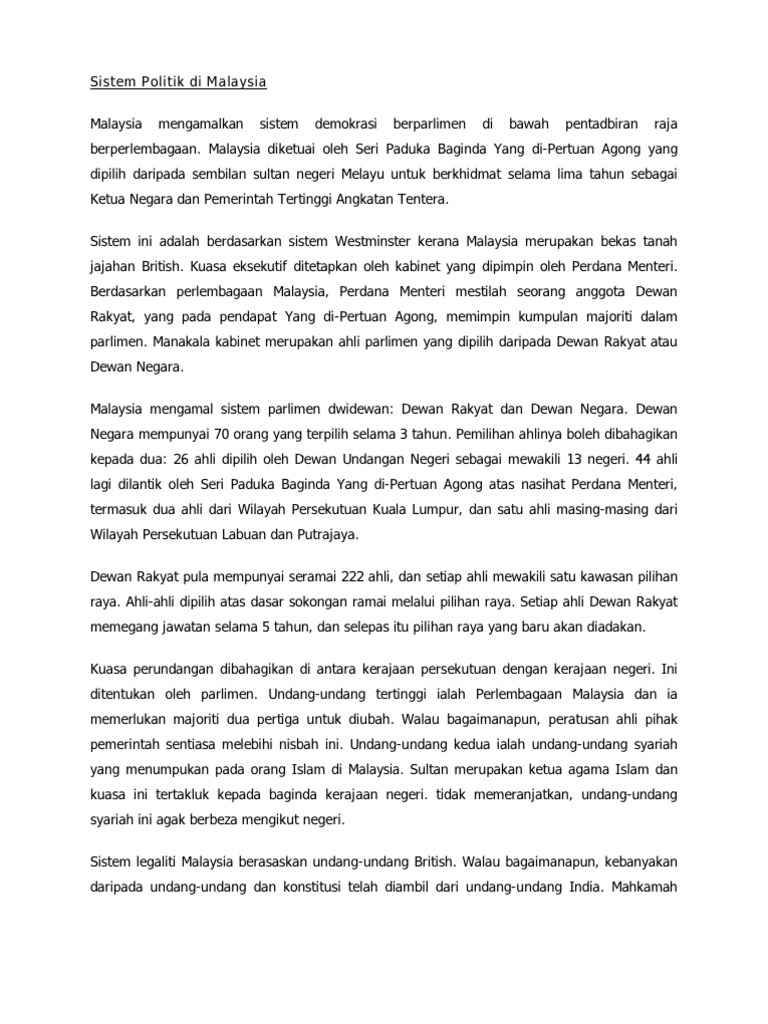 Sistem Dan Perkembangan Politik Malaysia Belajar Itu Mudah