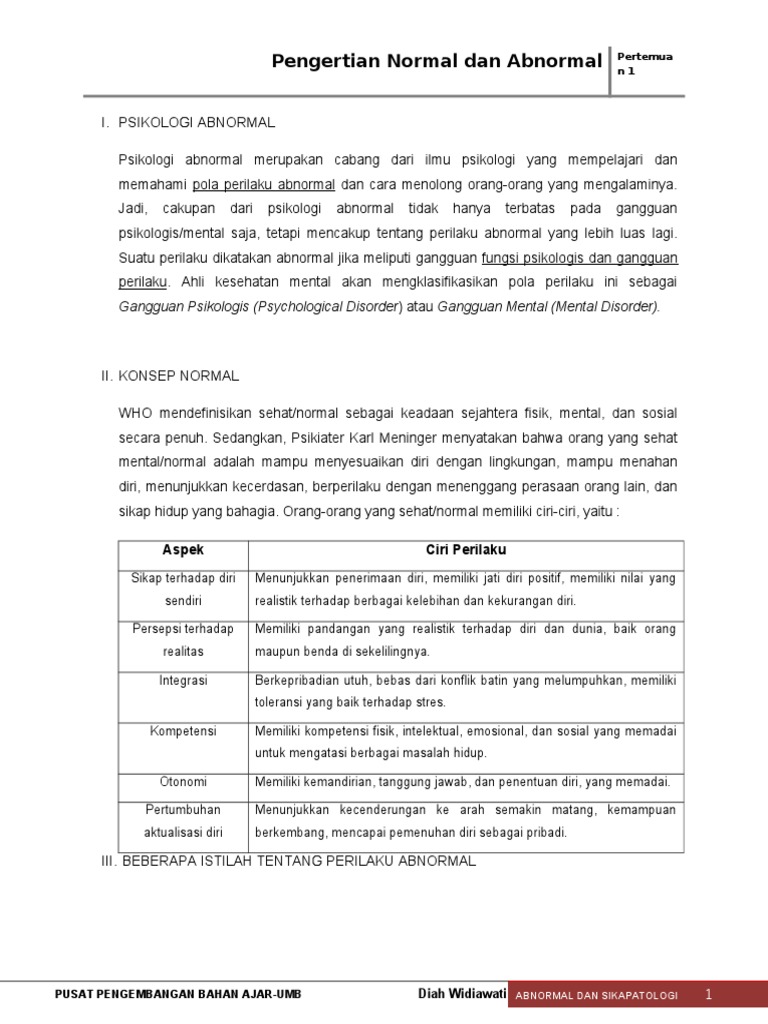 1 Pengertian Normal Dan Abnormal Psi Abnormal Diah Doc