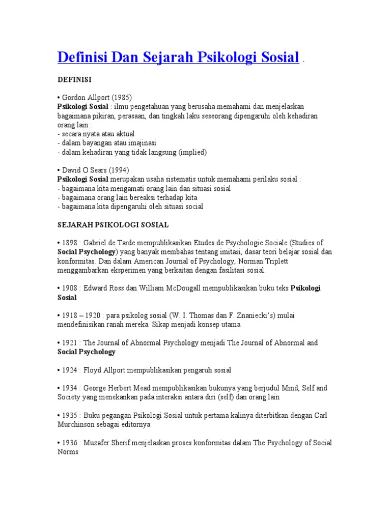 Definisi Dan Sejarah Psikologi Sosial
