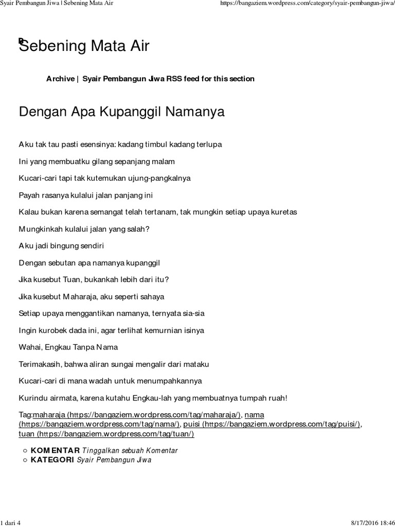 Syair Pembangun Jiwa Sebening Mata Air