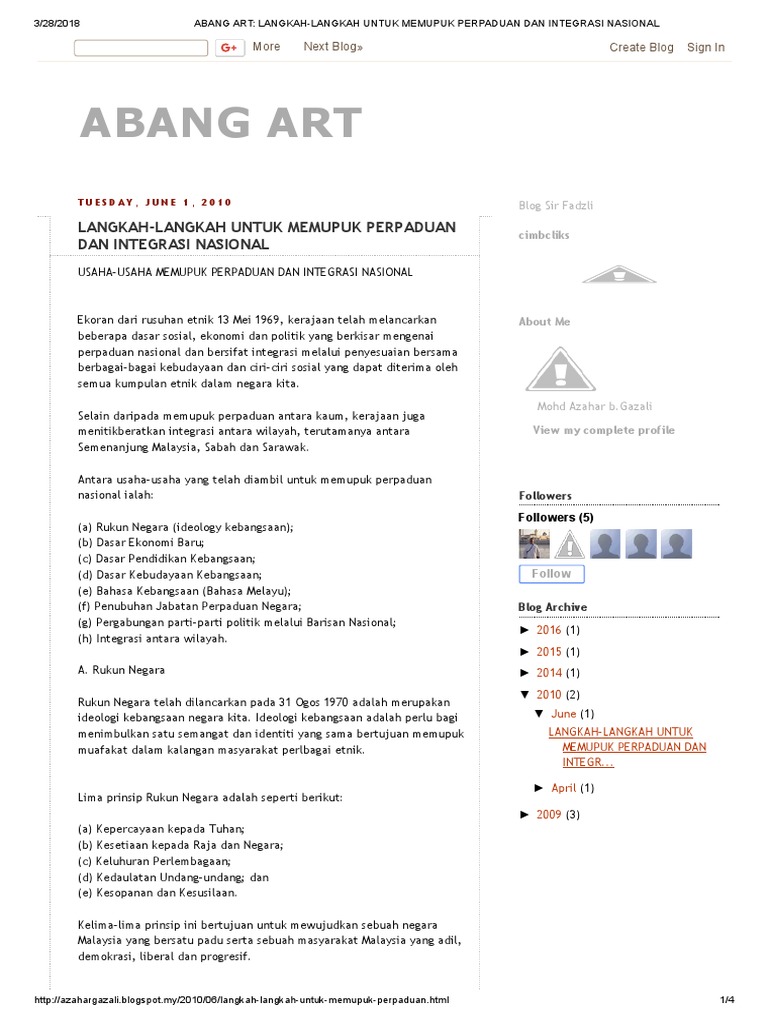 Abang Art Langkah Langkah Untuk Memupuk Perpaduan Dan Integrasi Nasional