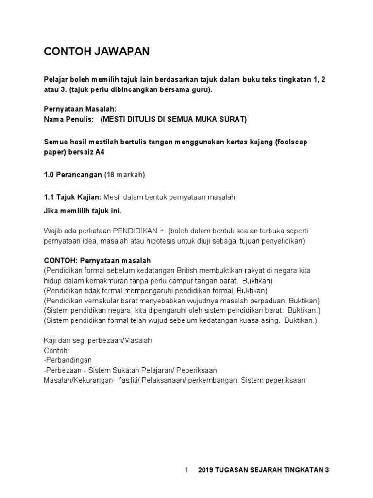 Contoh Rangka Tugasan Sejarah Tingkatan 3