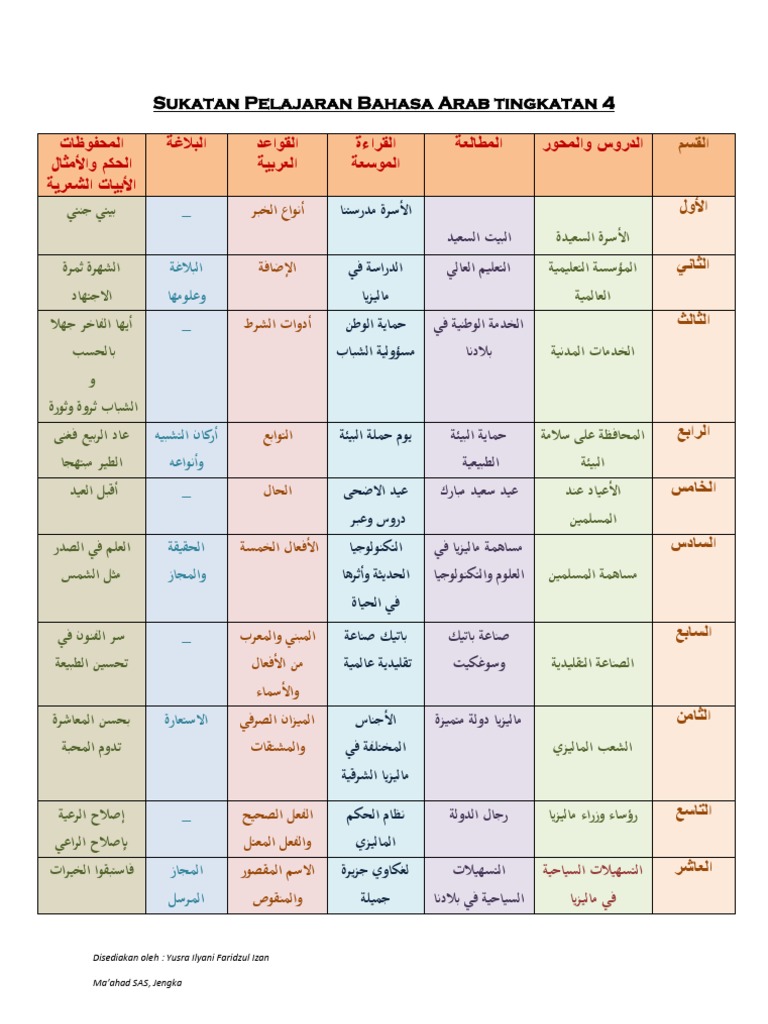 Sukatan Pelajaran Bahasa Arab Ting 4