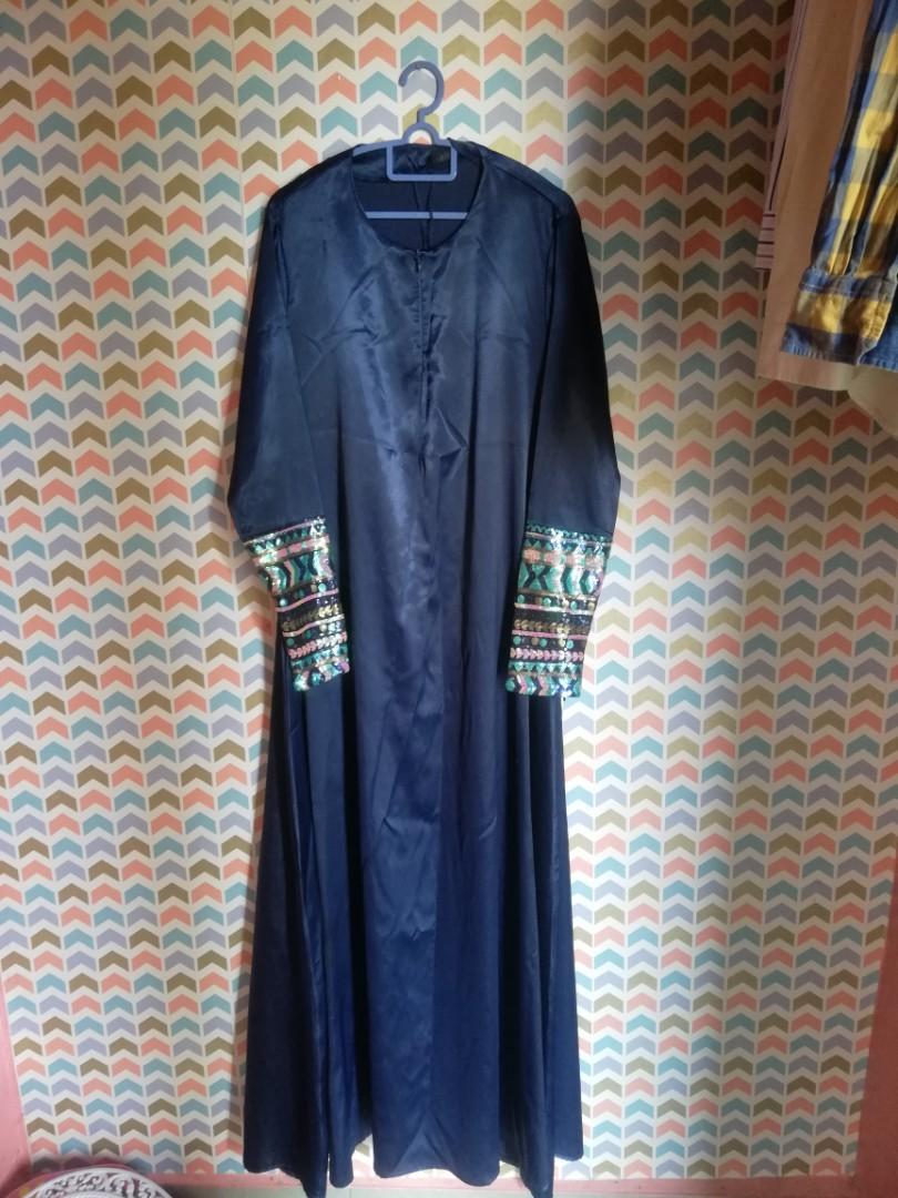 Jubah Dress Sequin Bf Wudhuk Friendly Heavy Dull Satin Navy Blue Muslimah Fashion Dresses On Carousell