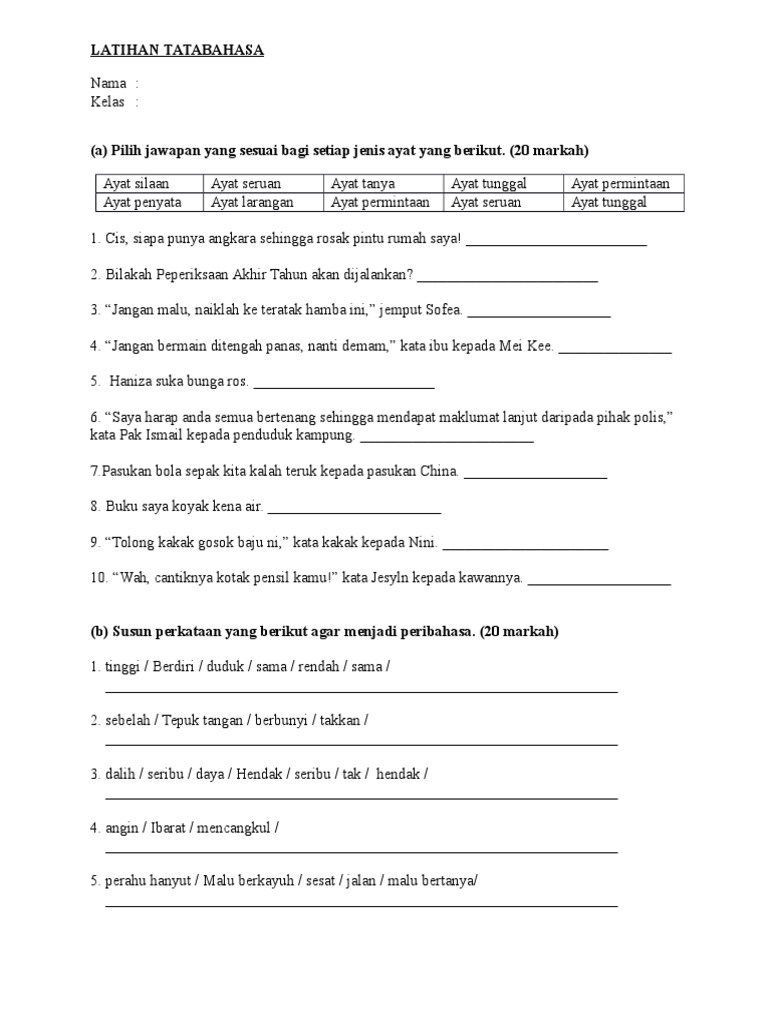 Latihan Tatabahasa Jenis Ayat Dan Membina Ayat Tingkatan 4