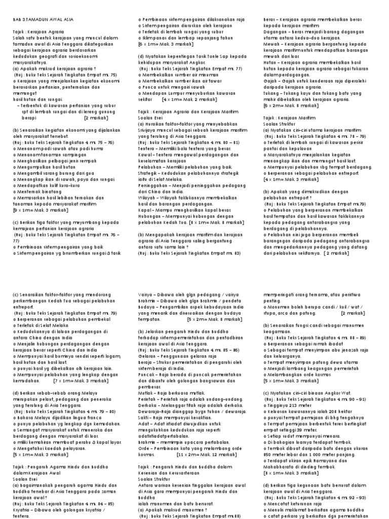 Sejarah Tingkatan 4 Bab 3 Kerajaan Awal Asia Tenggara Soalan Dan Jawapan