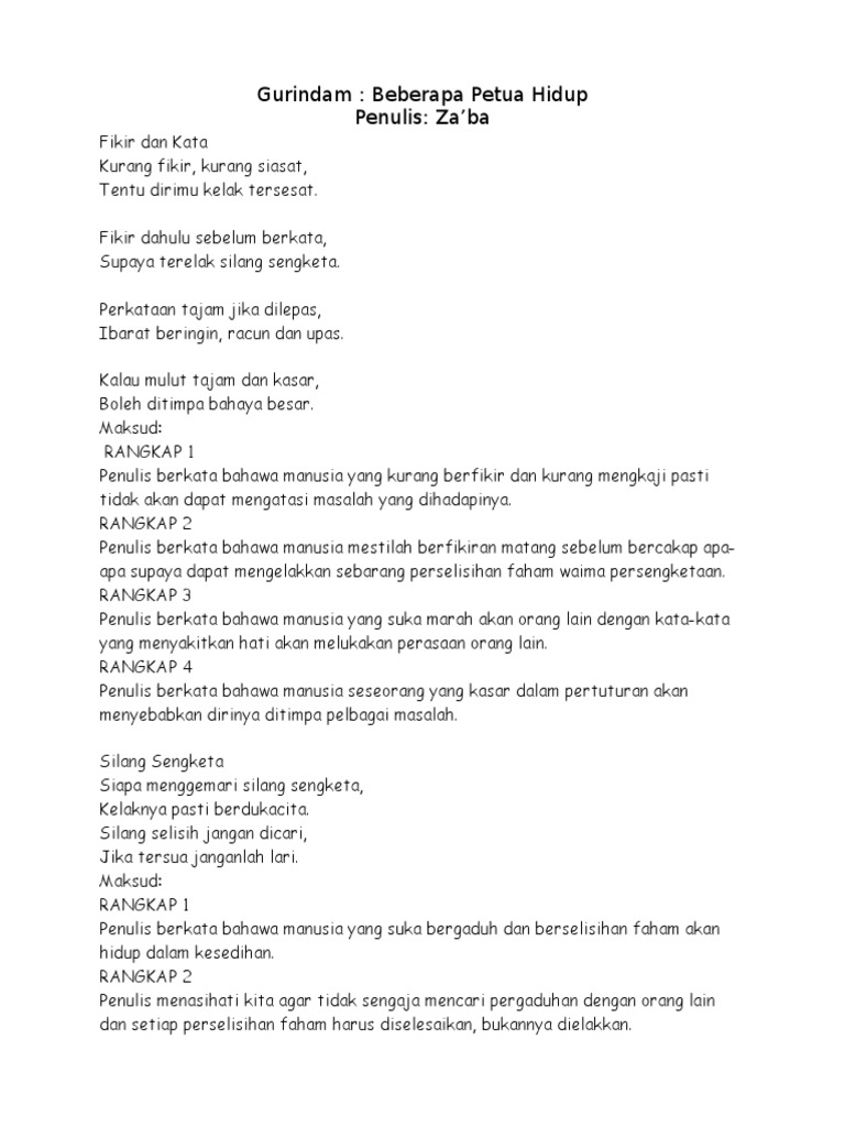Soalan Dan Jawapan Gurindam Beberapa Petua Hidup Tersoal M Cute766