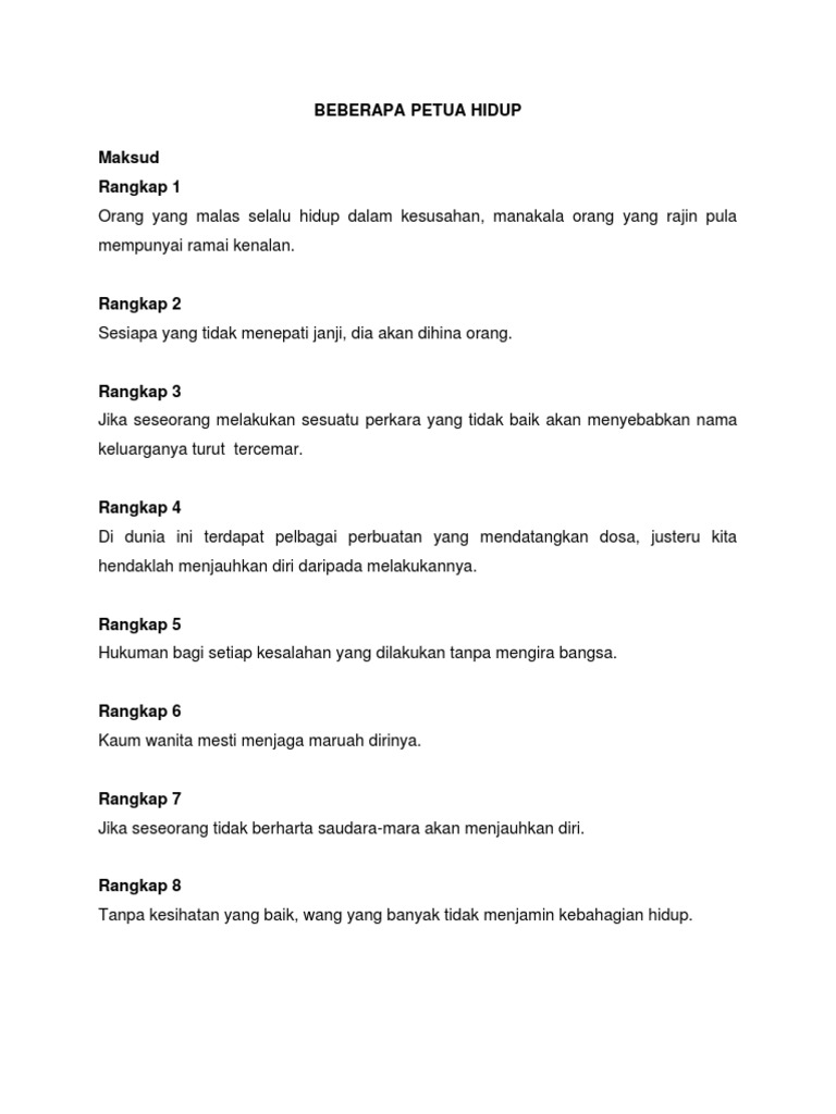 Soalan Dan Jawapan Gurindam Beberapa Petua Hidup Tersoal M