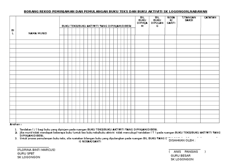 Doc Borang Rekod Pemulangan Buku Teks Florina Marcus Academia Edu