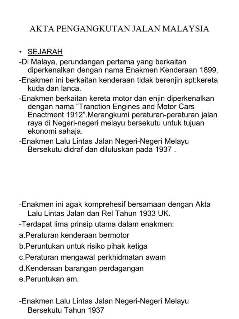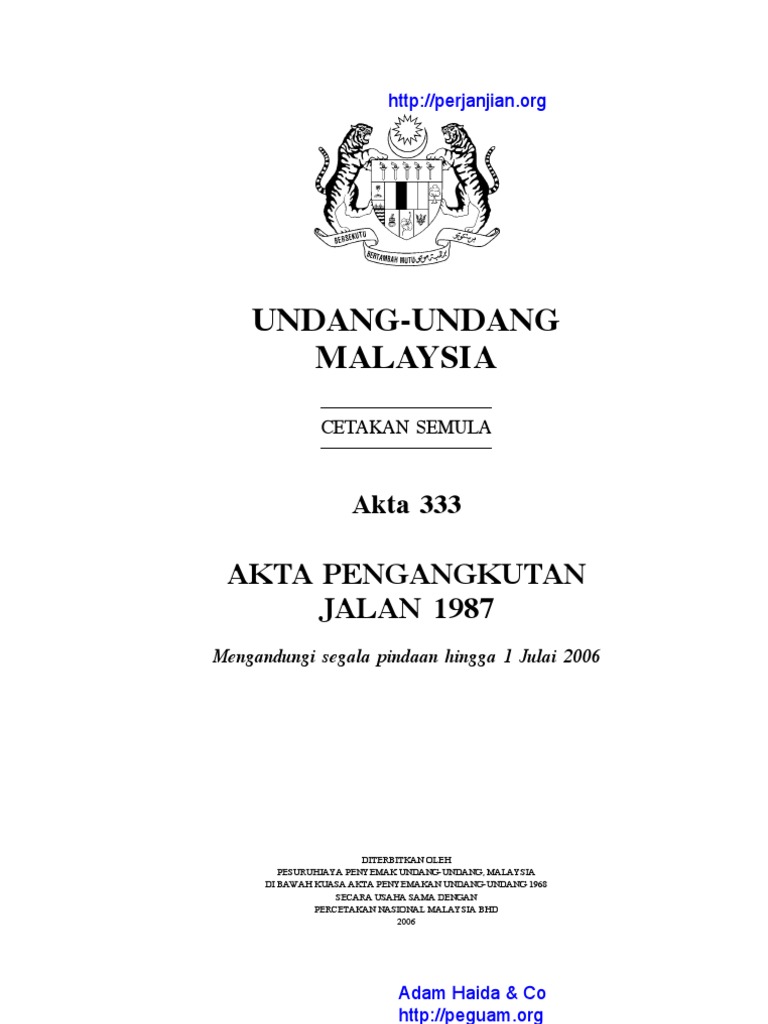 Akta Pengangkutan Jalan 1987 Akta 333 Pnmb2u