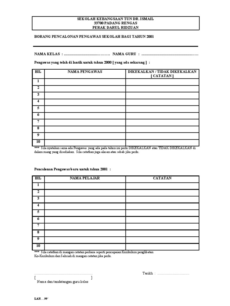 Borang Pencalonan Pengawas Sekolah