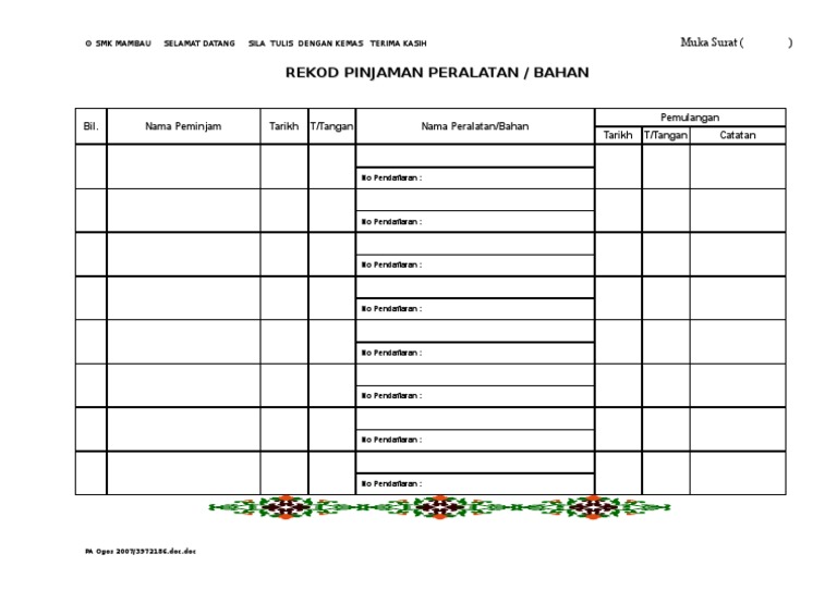 Rekod Pinjaman Stor Sukan Docx