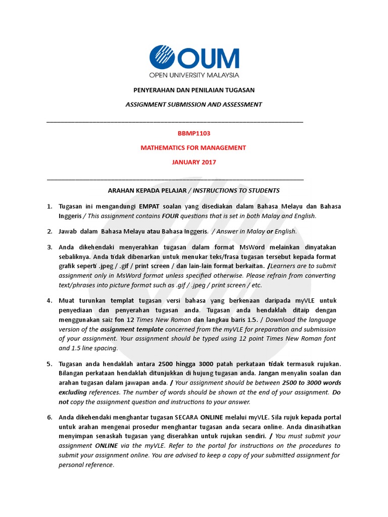 Bbmp1103 Mathematics For Management Docx Bbmp1103 Mathematics For Management Oum Business School Januari 2016 Bbmp1103 Mathematics For Management No Course Hero