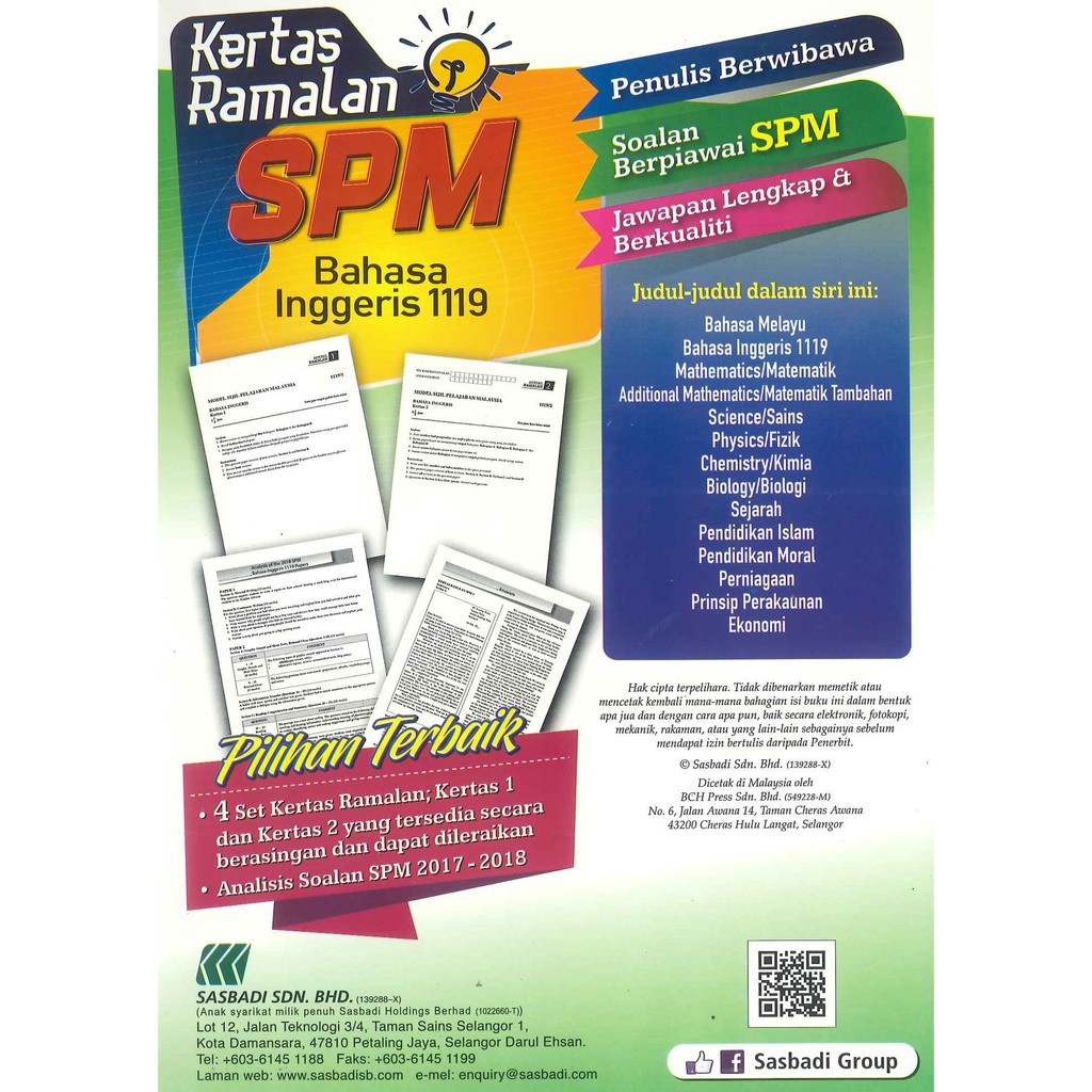 Buku Latihan Kertas Ramalan Spm Bahasa Inggeris 1119 Sasbadi Shopee Singapore