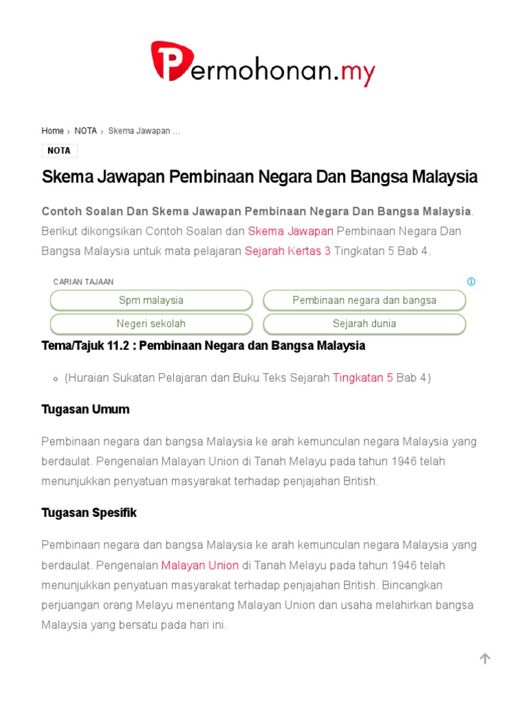 Skema Jawapan Pembinaan Negara Dan Bangsa Ke Arah Kemunculan Negara Malaysia Berdaulat Kertas 3 Spm Semakan Upu