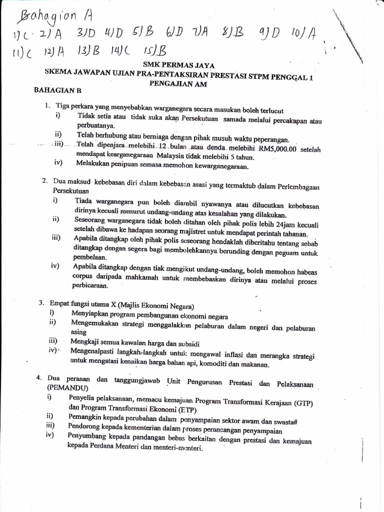 Skema Pengajian Am Percubaan Stpm Smk Permas Jaya