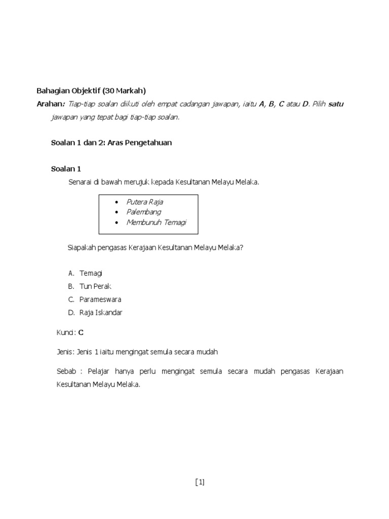Kertas Jawapan Objektif 20 Soalan Cikgu Ayu Dot My