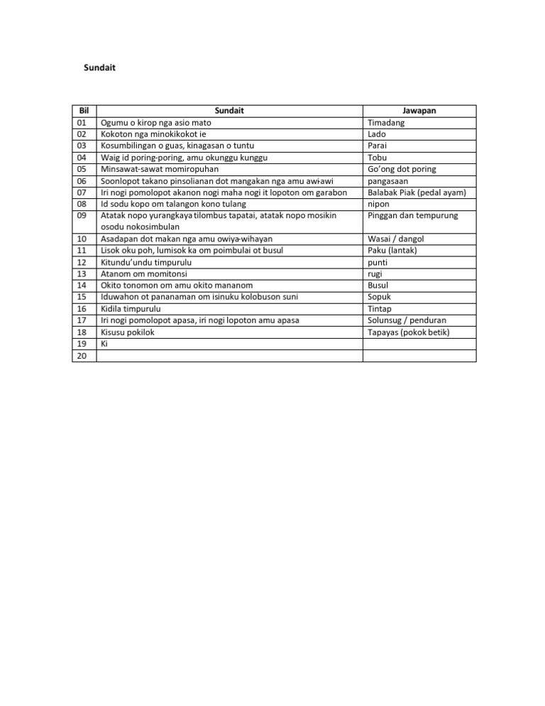 Sundait Dusun Dan Jawapan