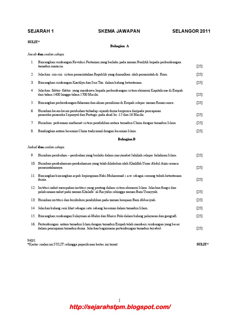 Soalan Dan Skema Jawapan Stpm Sejarah K1 Negeri Selangor 2011