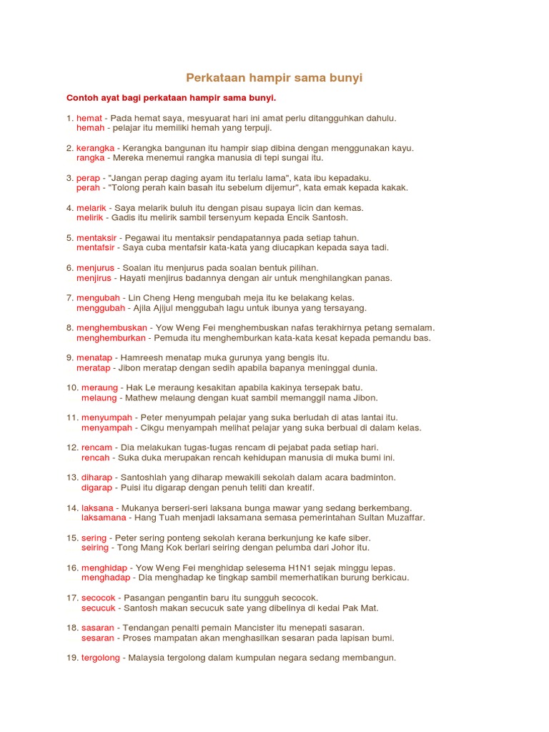A Perkataan Hampir Sama Bunyi Pdf Document