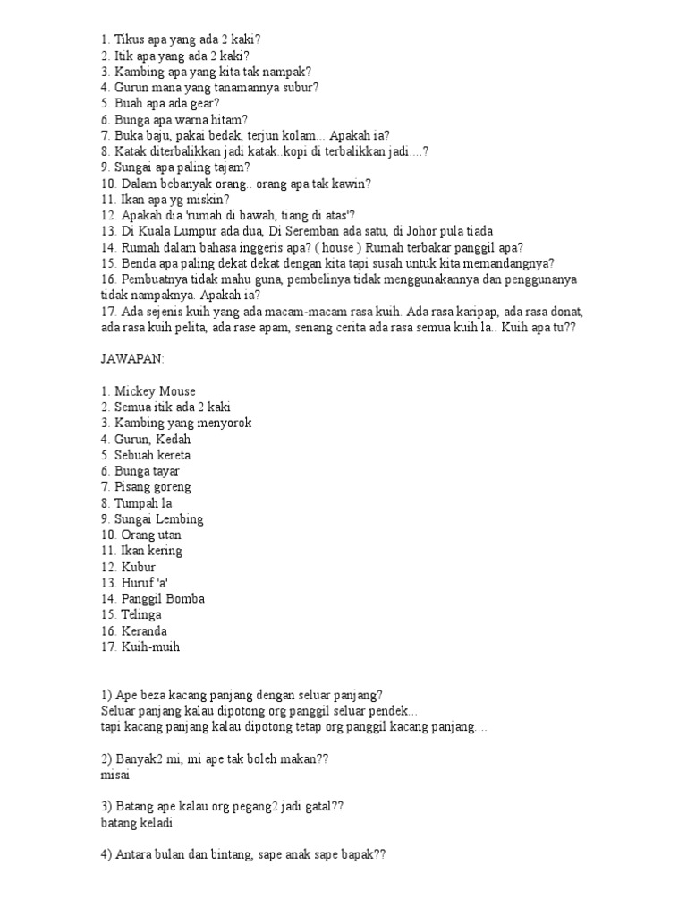 Teka Teki Bahasa Melayu Menarik Dan Mencabar Pdf Document