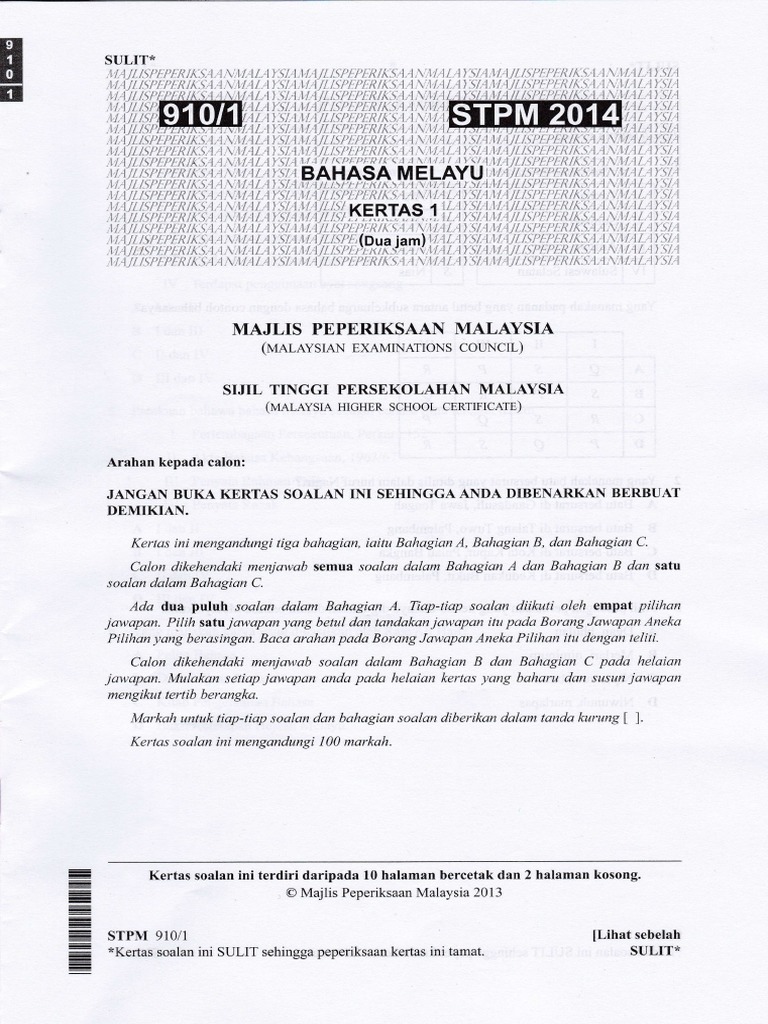 Skema Jawapan Bahasa Melayu Stpm Penggal 3 2013