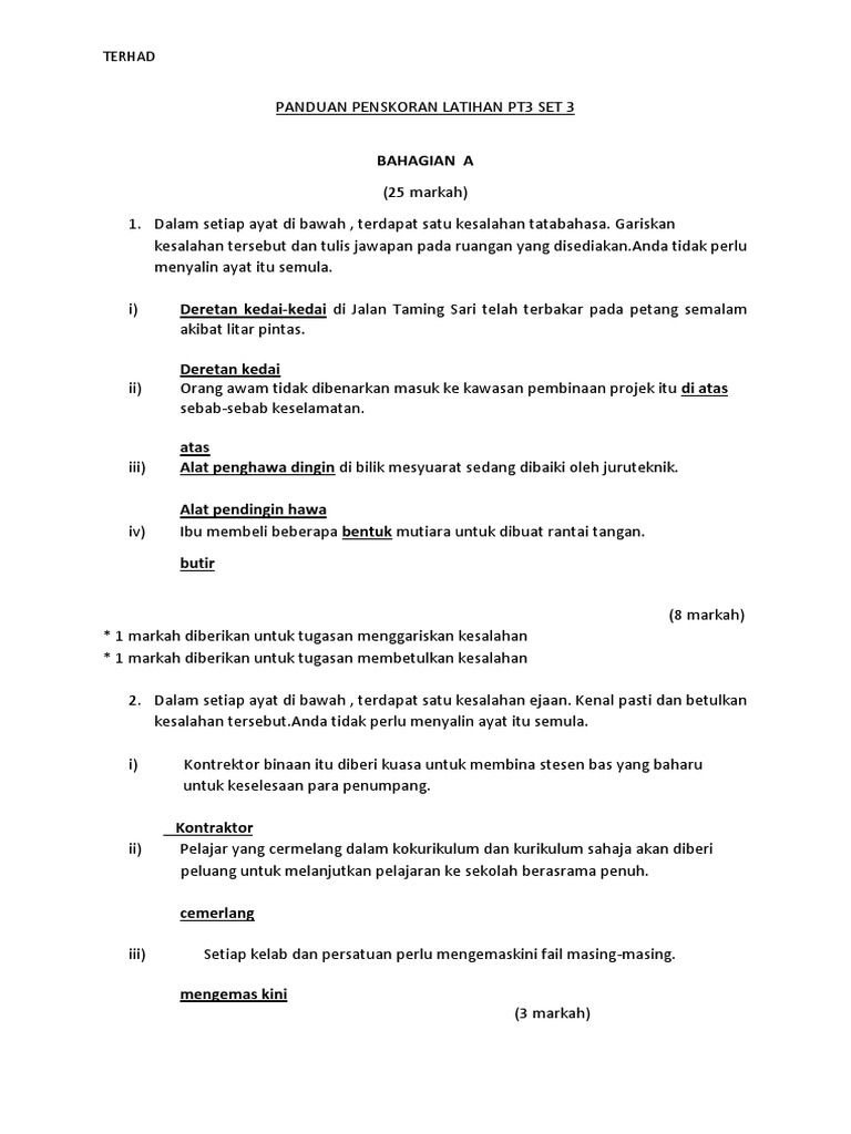 Soalan Dan Jawapan Kesalahan Bahasa Pt3 Selangor M