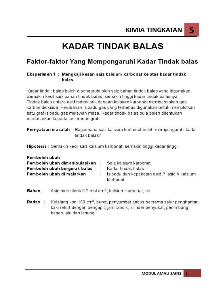 Pdf Bab 1 Kadar Tindak Balas Rate Of Reaction Arina Adila Academia Edu