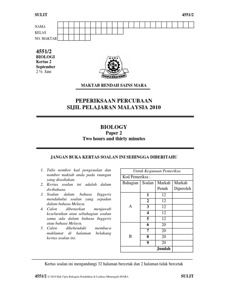 Biology Paper 2 3 Trial Spm 2013 Mrsm Gr