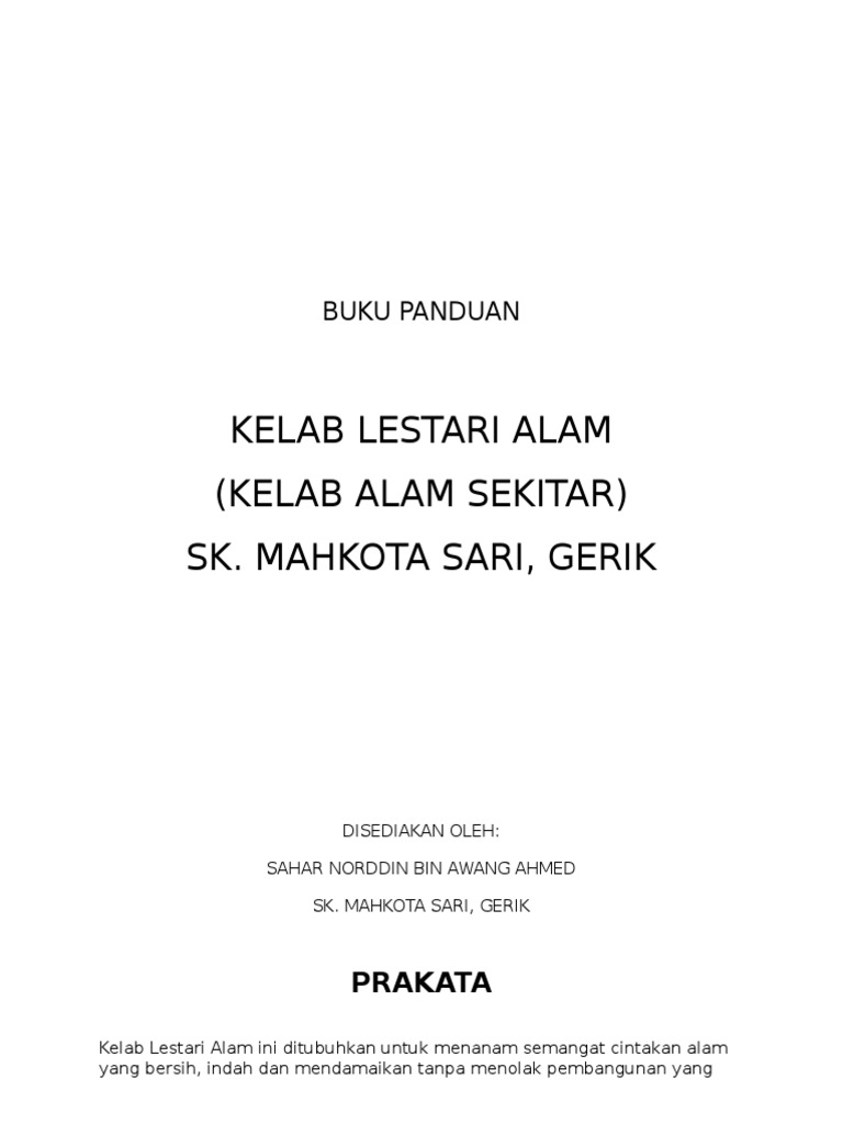 Buku Panduan Kelab Alam Sekitar Docx Document