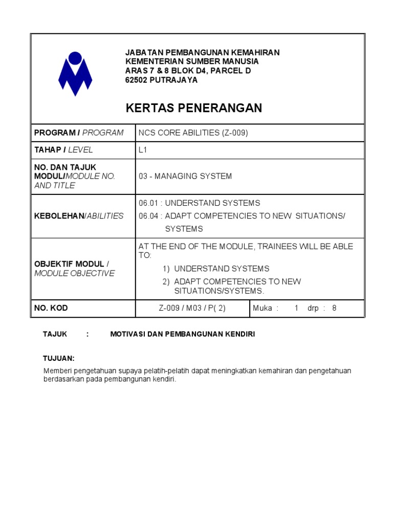 Panduan Pelaksanaan Kebolehan Teras Z 009 2015 Berkuatkuasa 1 Julai 2