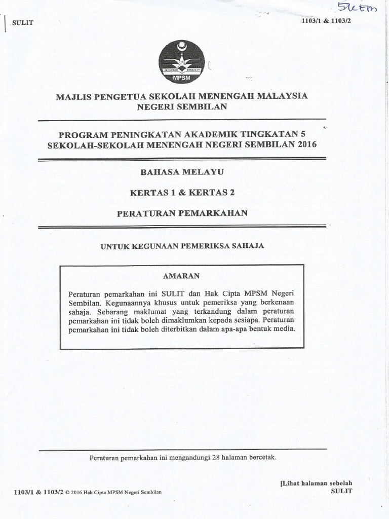 Skema Jawapan Kertas 1 Dan Kertas 2 Negeri Sembilan Bm Spm Percubaan Pdf