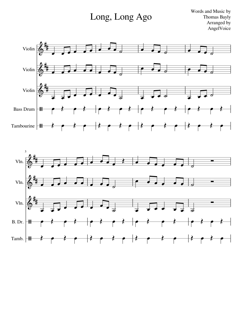Long Long Ago Sheet Music For Violin Bass Drum Tambourine Mixed Quintet Musescore Com
