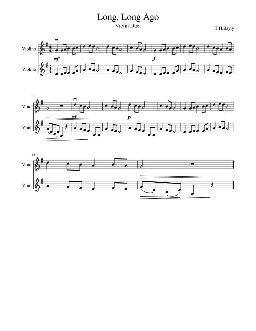 Long Long Ago Violin Duet Sheet Music For Violin String Duet Musescore Com