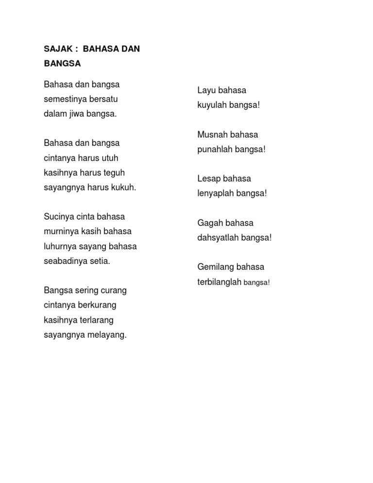 Bahasa Melayu Sajak Bahasa Dan Bangsa
