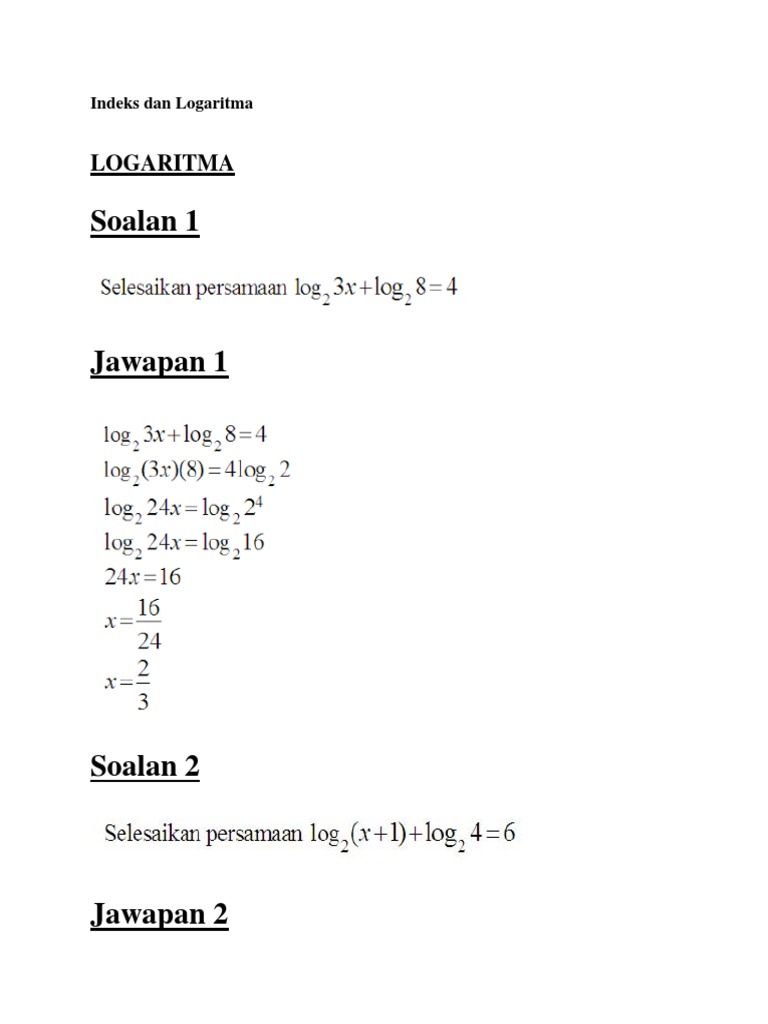 Soalan Dan Jawapan Indeks Dan Logaritma