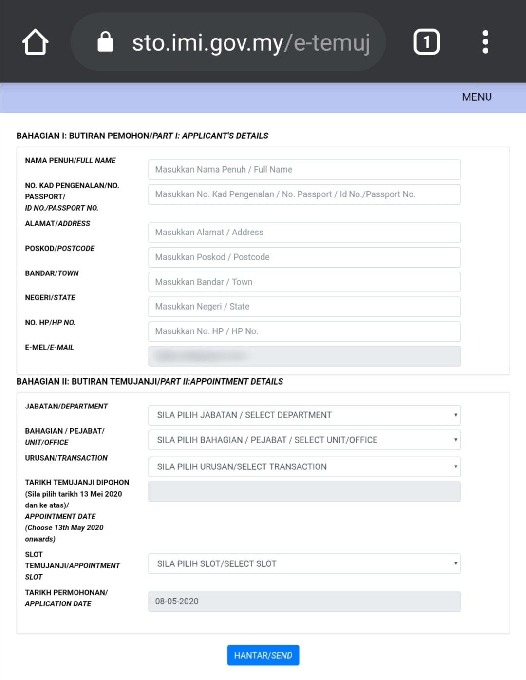 Imigresen Malaysia On Twitter Jabatan Imigresen Malaysia Melaksanakan Sistem Temujanji Online Sto Bermula 8 Mei 2020 Https T Co Vlyveyi8bt Sistem Temujanji Online Jabatan Imigresen Malaysia Https T Co 9b54yqghmt Imigresen Jim Covid19