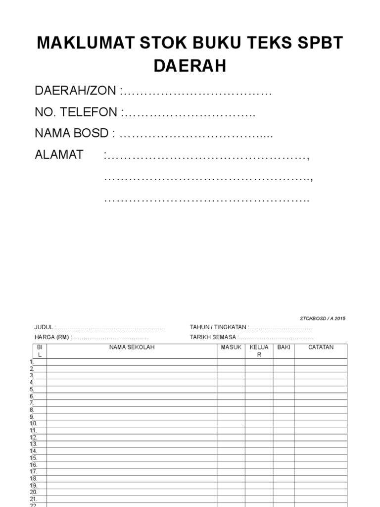 Rosma Azmi Borang Hantar Dan Ambil Buku Teks Di Bosd Xlsx