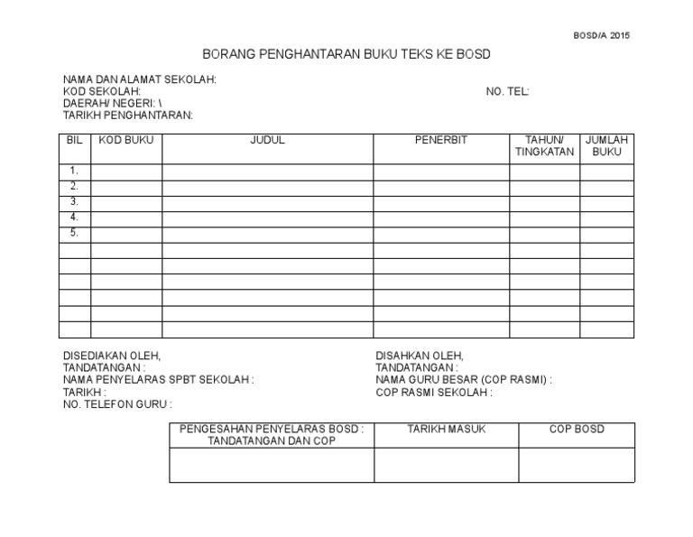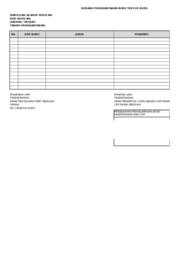 Borang Penghantaran Buku Teks Ke Bosd