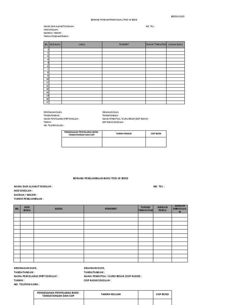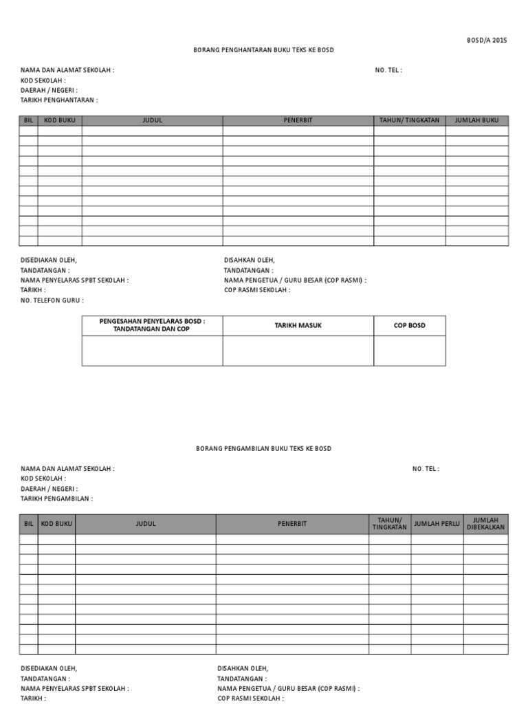 Borang Hantar Dan Ambil Buku Teks Di Bosd
