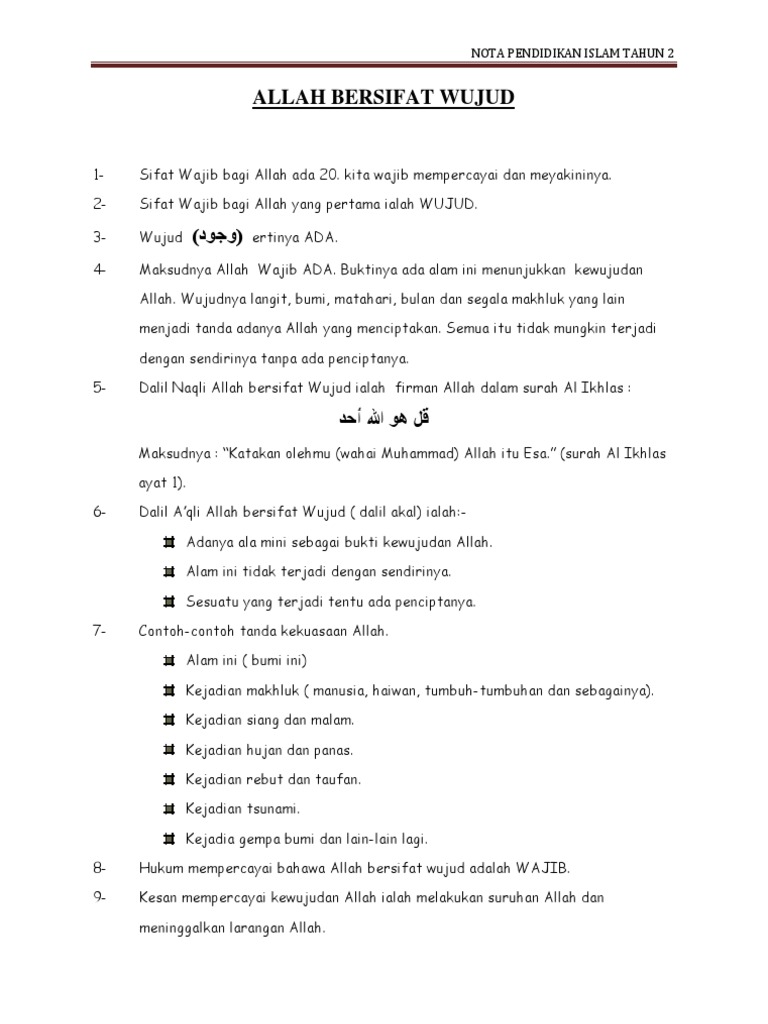 Bukti Keimanan Terhadap Sifat Sifat Allah Tahun 2 Sumber Pengajaran