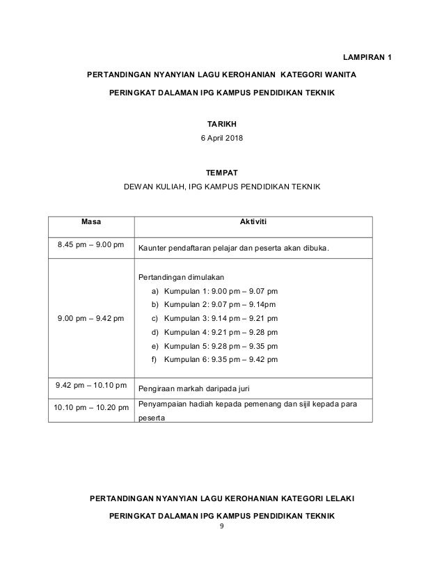Kertas Kerja Pertandingan Nyanyian Lagu Kerohanian