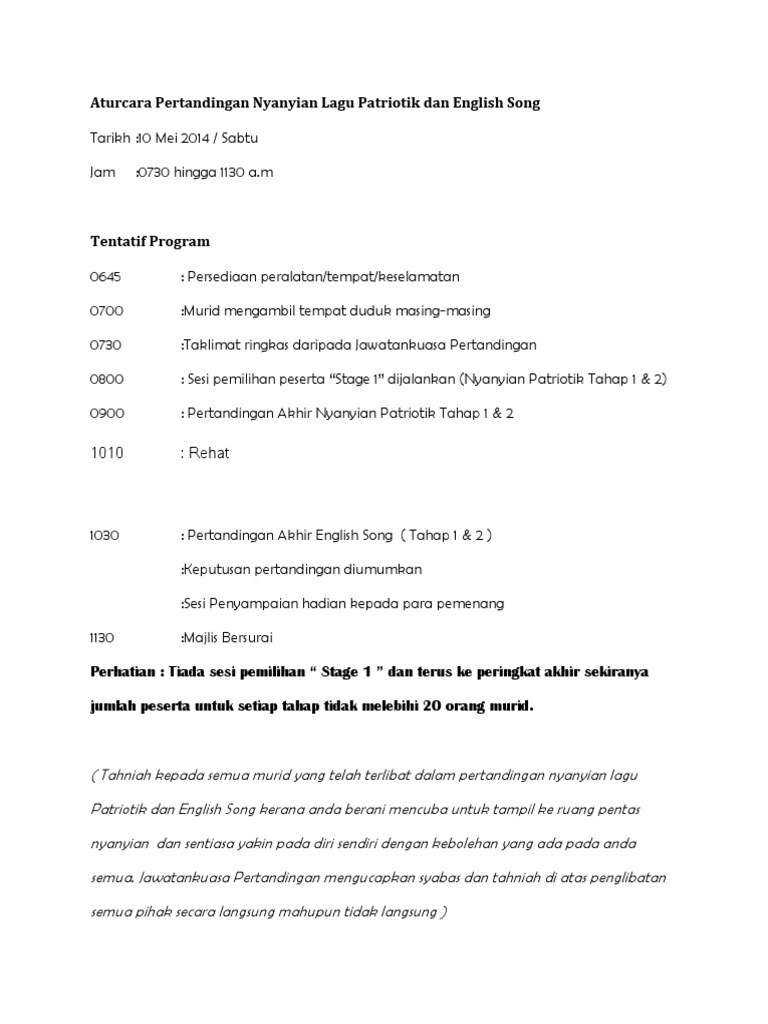 Aturcara Pertandingan Nyanyian Lagu Patriotik