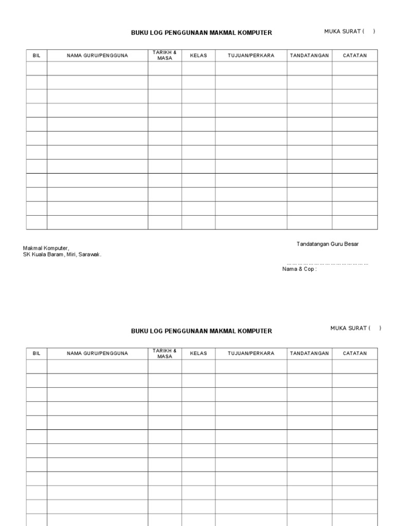 Buku Log Penggunaan Makmal Komputer Docx Document