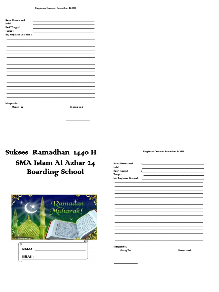 2 Contoh Buku Kegiatan Ramadhan Untuk Siswa Sd Smp Sma Katulis