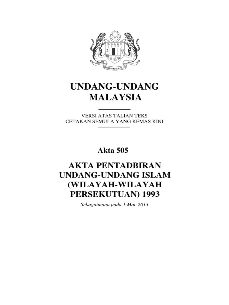 Akta 505 Akta Pentadbiran Undang Undang Islam Wilayah Wilayah Persekutuan 1993
